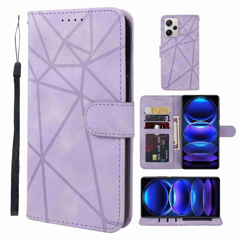Για Xiaomi Redmi Note 12 Pro + 5G Global Skin Feel γεωμετρικές γραμμές δερμάτινη θήκη τηλεφώνου (μωβ)