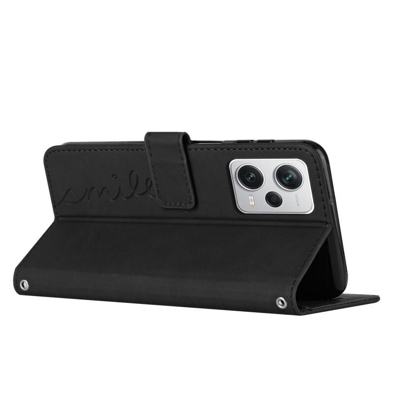 Για Xiaomi Redmi Σημείωση 12 Pro 5G Παγκόσμια δέρμα αίσθηση καρδιά μοτίβο δερμάτινη θήκη τηλεφώνου (μαύρο)