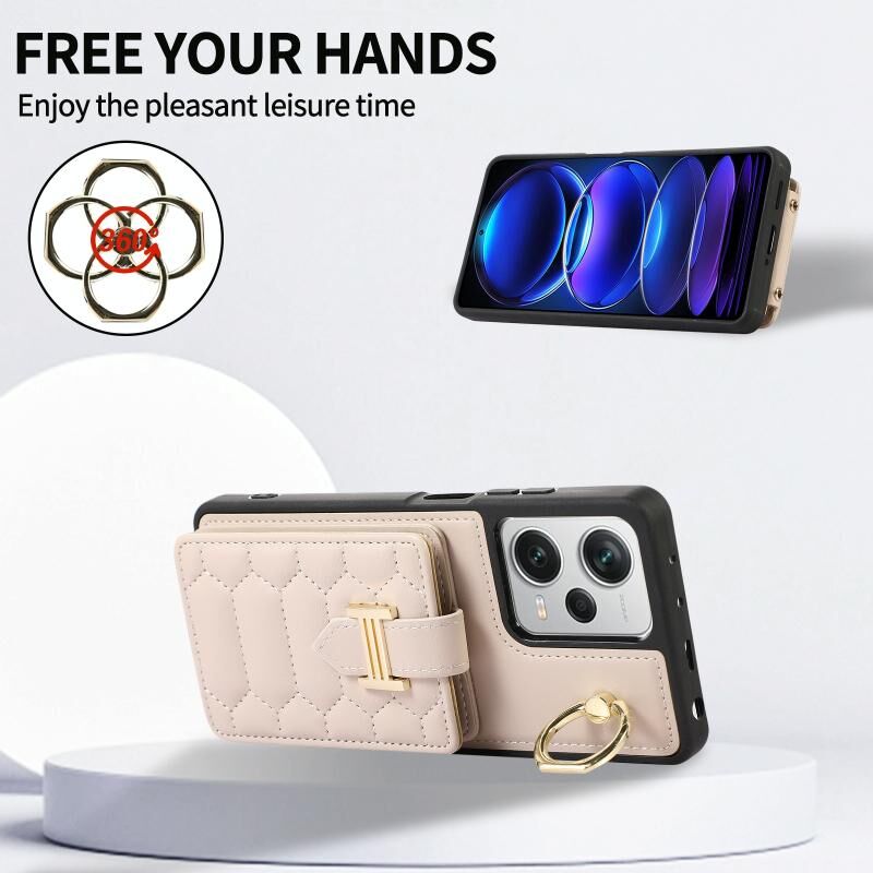 Για Xiaomi Redmi Σημείωση 12 Pro 5G Παγκόσμια κάθετη κάρτα τσάντα δαχτυλίδι τσάντα κάτοχος τηλέφωνο υπόθεση με διπλή κορδόνι (Μπεζ)