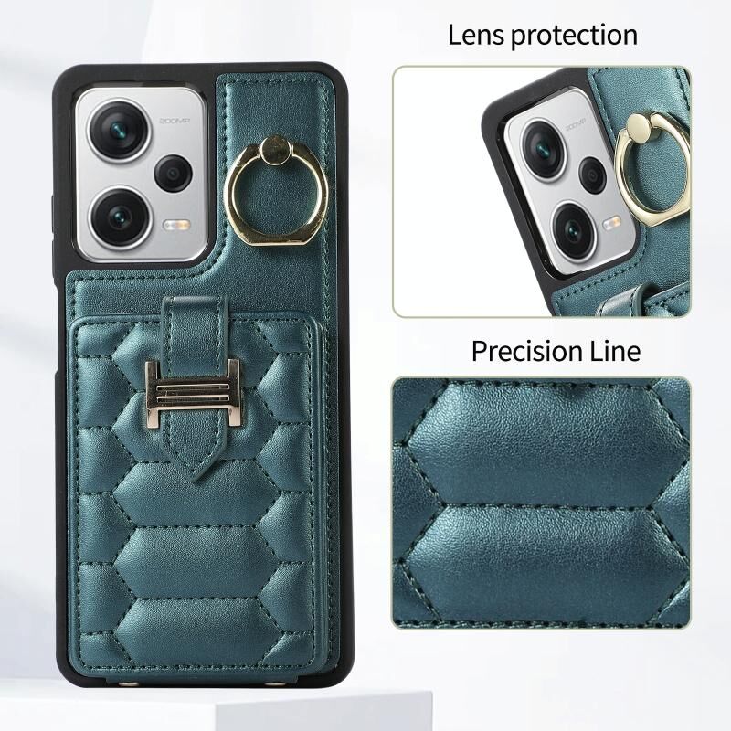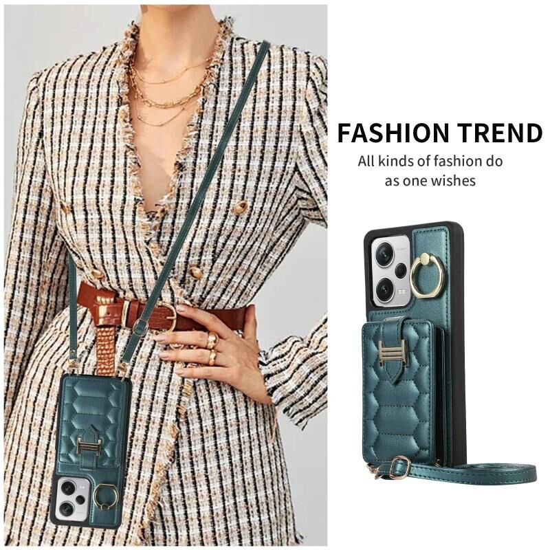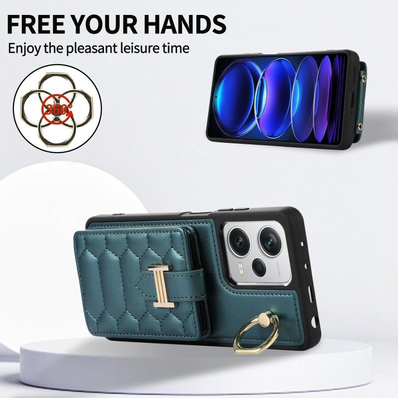 Για Xiaomi Redmi Σημείωση 12 Pro 5G Παγκόσμια κάθετη κάρτα τσάντα δαχτυλίδι τσάντα κάτοχος τηλέφωνο υπόθεση με διπλή κορδόνι (σκούρο πράσινο)