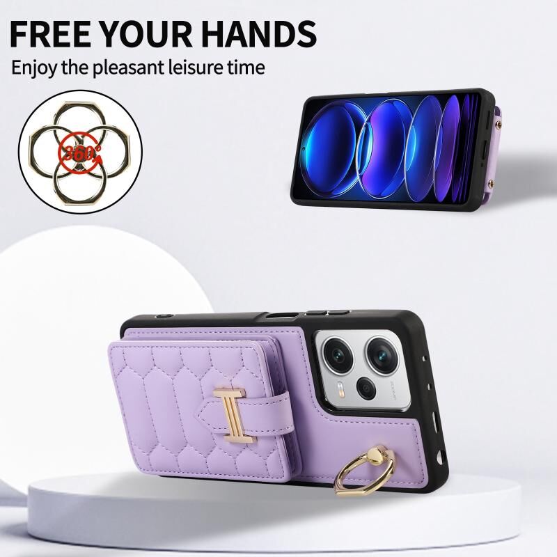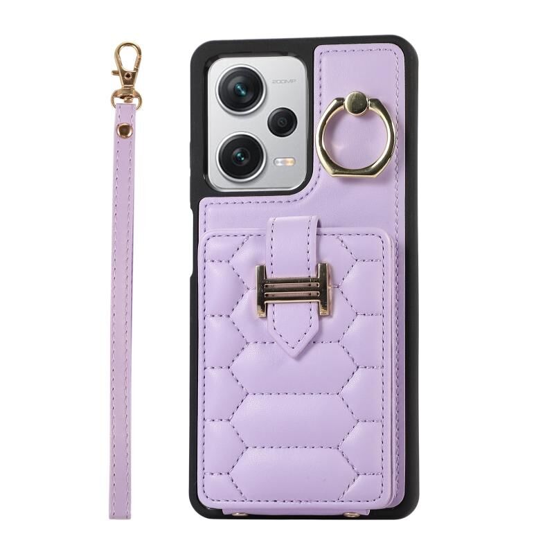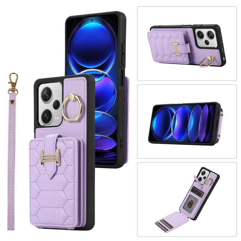 Για Xiaomi Redmi Σημείωση 12 Pro 5G Παγκόσμια κάθετη κάρτα τσάντα δαχτυλίδι τσάντα κάτοχος τηλέφωνο υπόθεση με διπλή κορδόνι (μωβ)