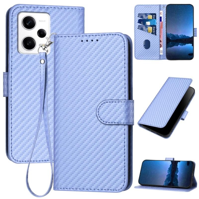 Για Xiaomi Redmi Note 12 Pro 5G Global YX0070 Carbon Fiber πόρπη δερμάτινη θήκη τηλεφώνου με κορδόνι (ανοιχτό μοβ)