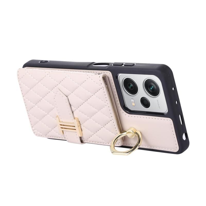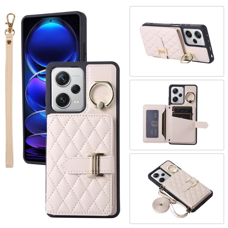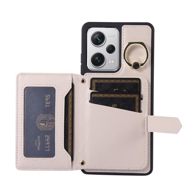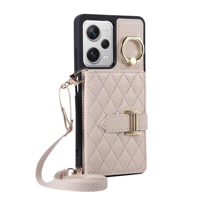 Για Xiaomi Redmi Σημείωση 12 Pro 5G Οριζόντια κάρτα τσάντα δαχτυλίδι κάτοχος τηλέφωνο υπόθεση με διπλό κορδόνι (μπεζ)