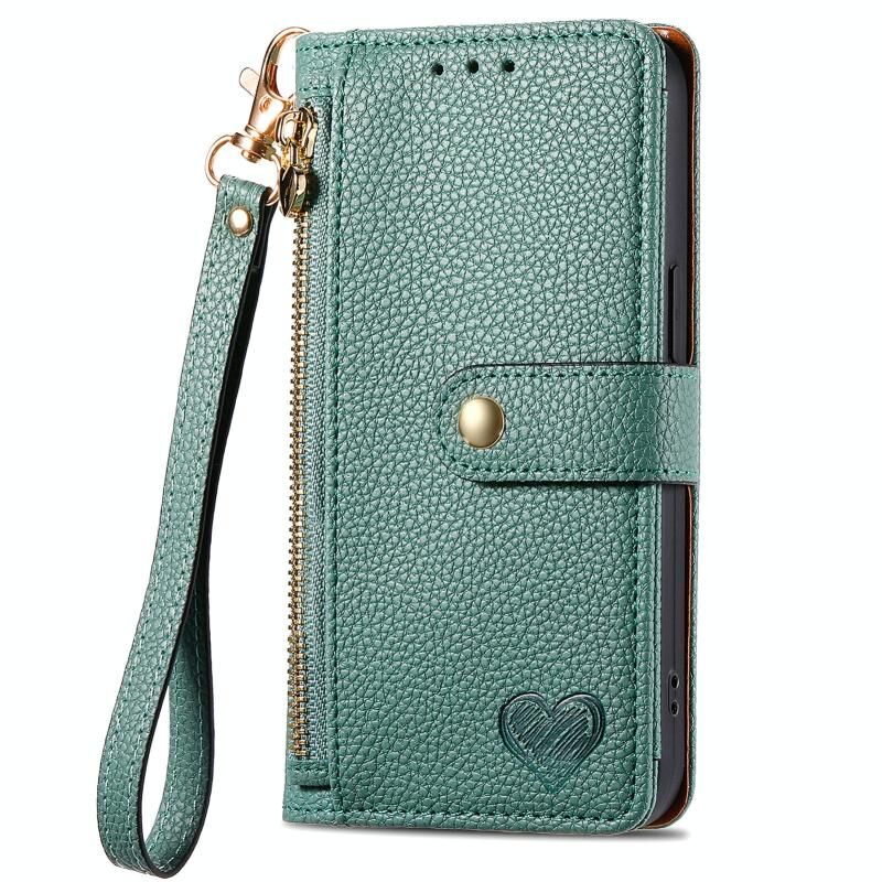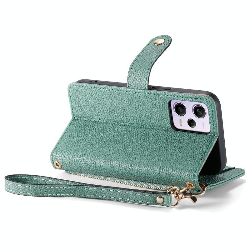 Για Xiaomi Redmi Σημείωση 12 Pro 5G αγάπη φερμουάρ Lanyard δέρμα τηλέφωνο υπόθεση (πράσινο)