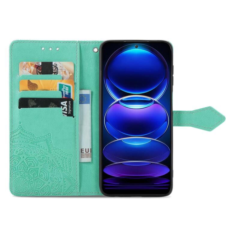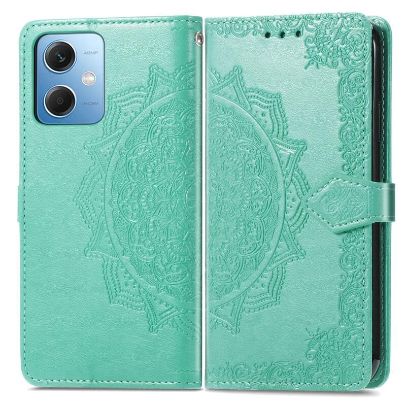 Για Xiaomi Redmi Σημείωση 12 Pro 5G Mandala λουλούδι ανάγλυφο δέρμα τηλέφωνο υπόθεση (πράσινο)