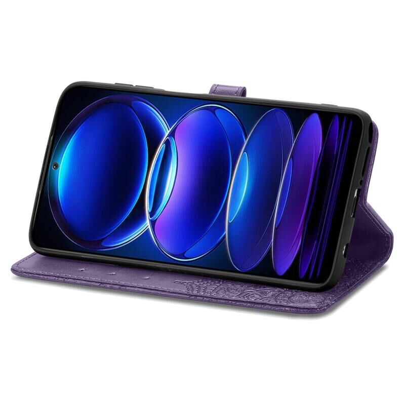 Για Xiaomi Redmi Σημείωση 12 Pro 5G Mandala λουλούδι ανάγλυφο δέρμα τηλέφωνο υπόθεση (μωβ)