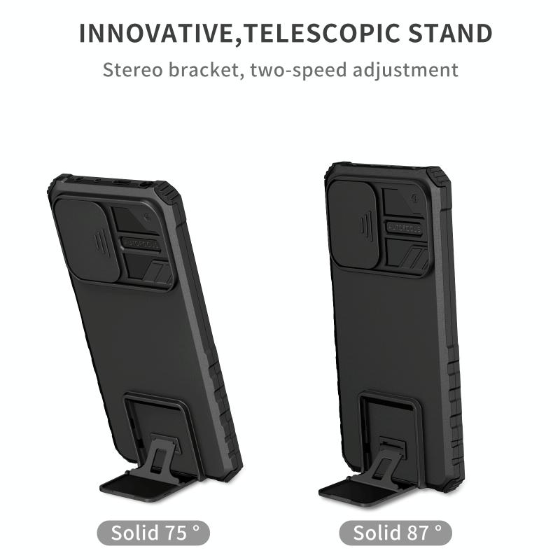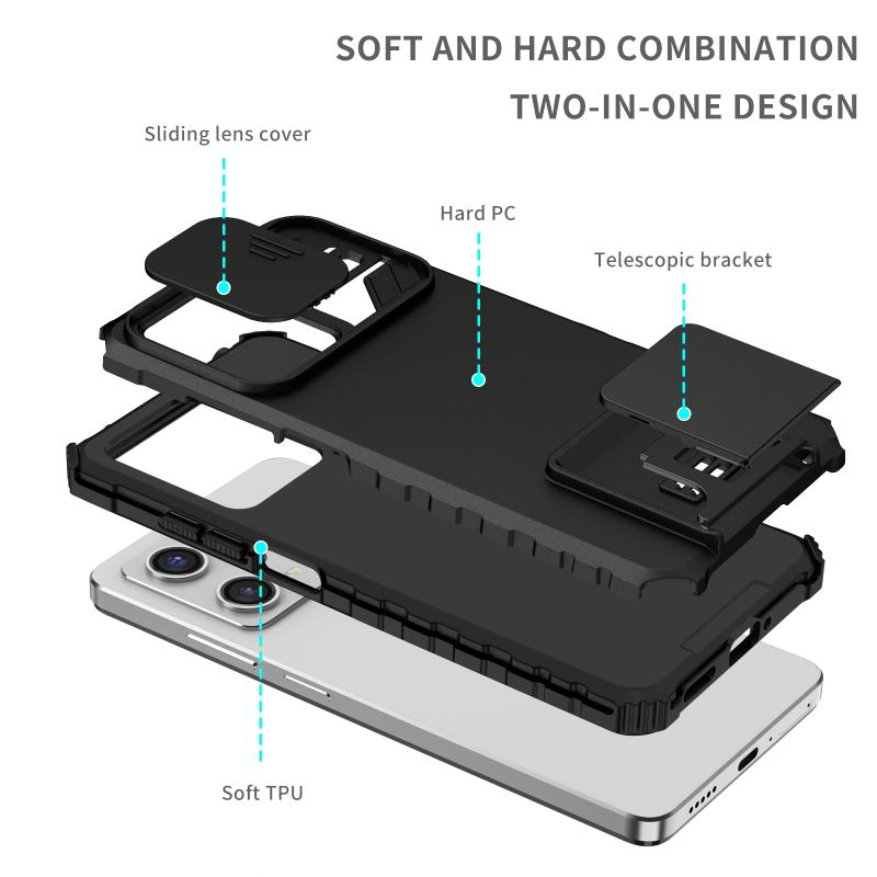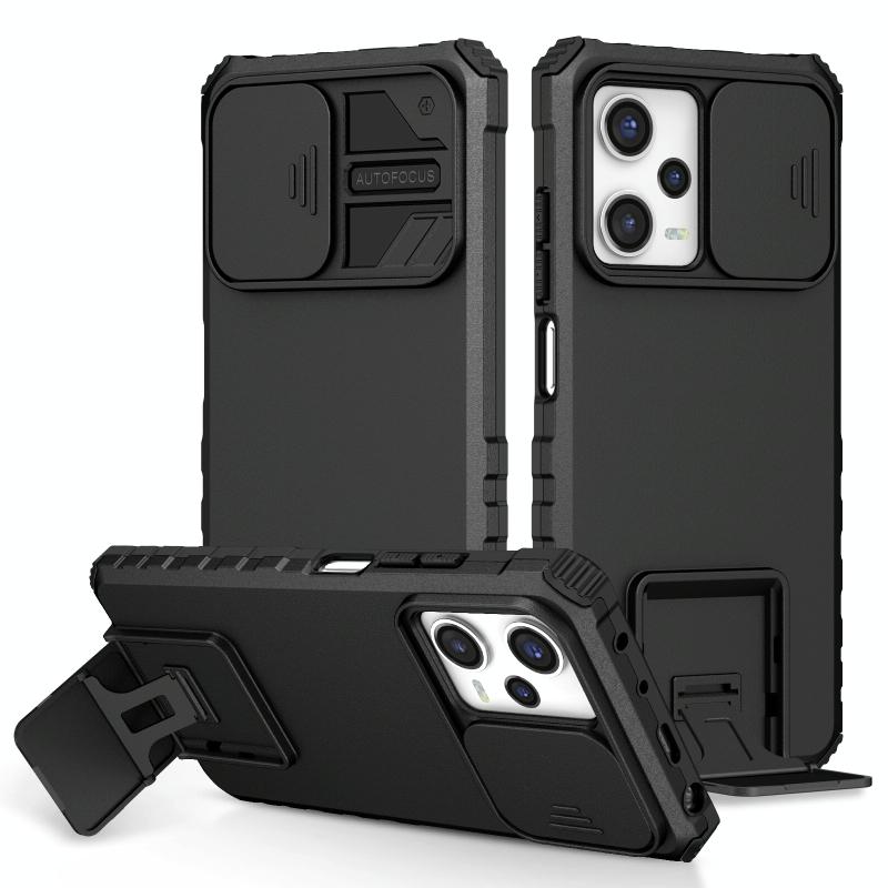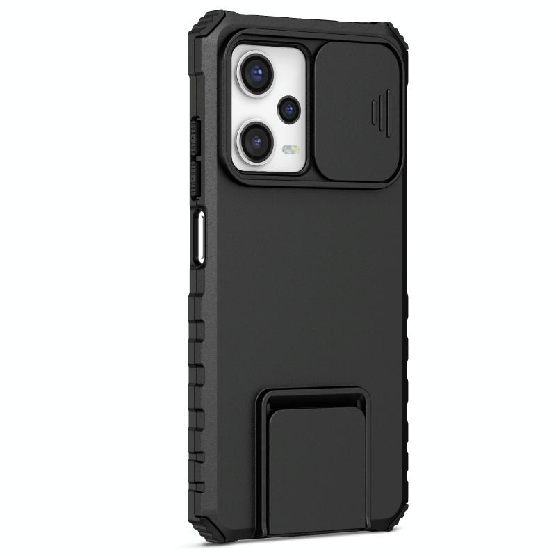 Θήκη τηλεφώνου με στερεοσκοπικό στήριγμα και συρόμενο προστατευτικό κάμερας για Xiaomi Redmi Note 12 Pro 5G / Poco X5 Pro (Μαύρο)