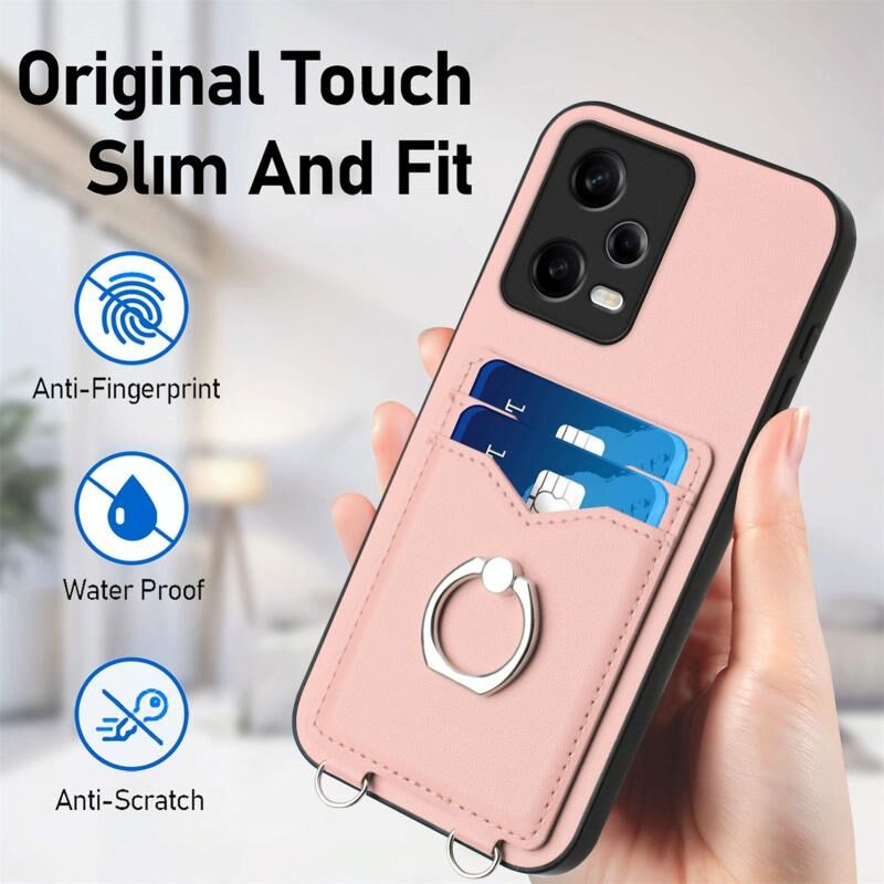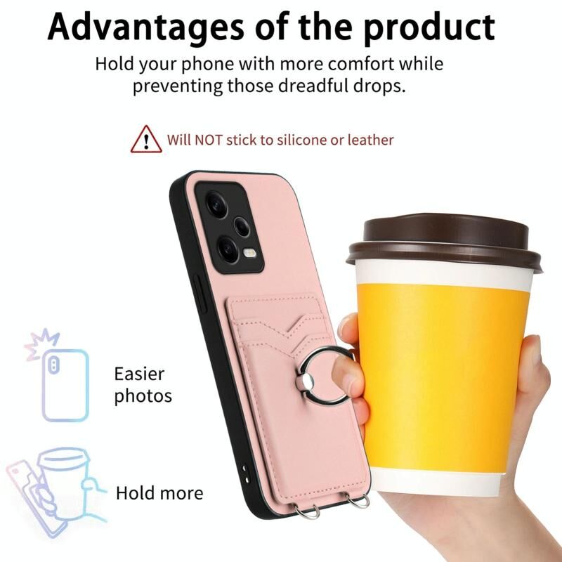 Για Xiaomi Redmi Note 12 Pro + 5G R20 Crossbody Rope Ring Card Holder τηλέφωνο υπόθεση (ρόζ)
