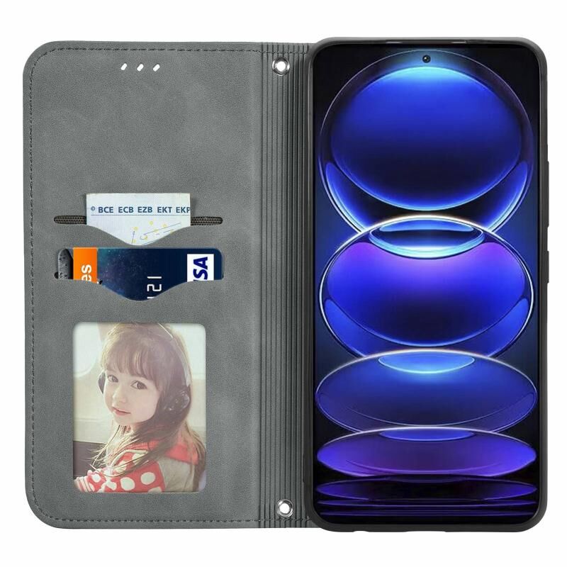 Για Xiaomi Redmi Note 12 Pro + 5G ρετρό δέρμα αίσθηση μαγνητική Flip δέρμα τηλέφωνο υπόθεση (γκρι)
