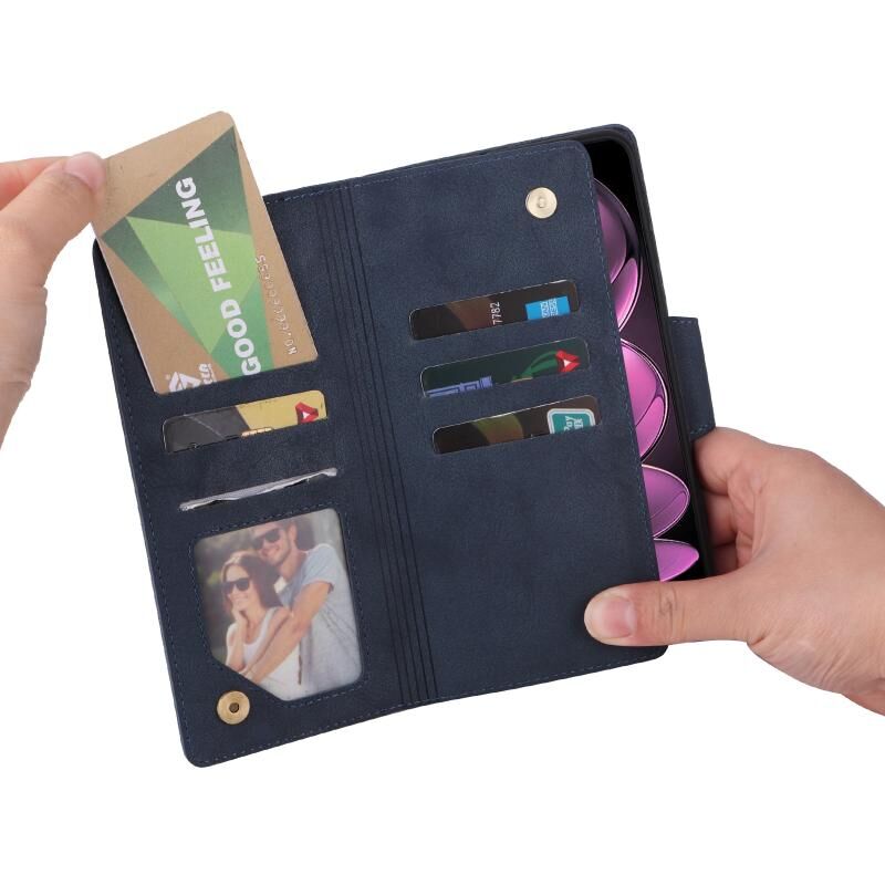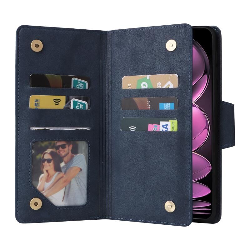 Για Xiaomi Redmi Note 12 Pro 5G Speed / Σημείωση 12 Pro 5G Global / Poco X5 Pro Rivet πόρπη 9 κάρτες τρεις φορές δερμάτινη θήκη τηλεφώνου (μπλε)