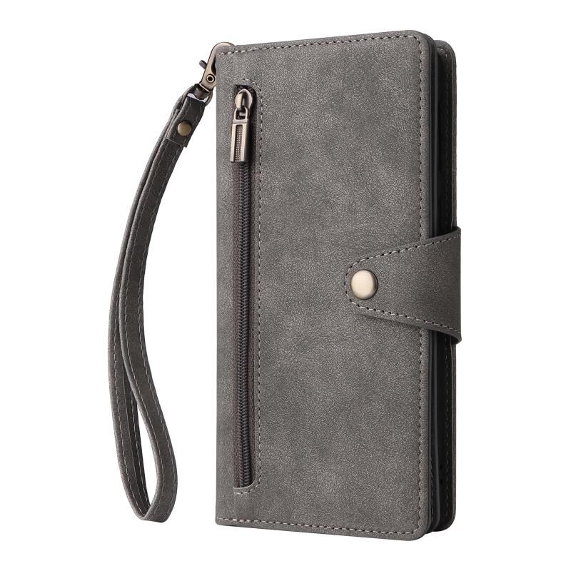 Για Xiaomi Redmi Note 12 Pro 5G Speed / Σημείωση 12 Pro 5G Global / Poco X5 Pro Rivet πόρπη 9 κάρτες τρεις φορές δερμάτινη θήκη τηλεφώνου (γκρι)