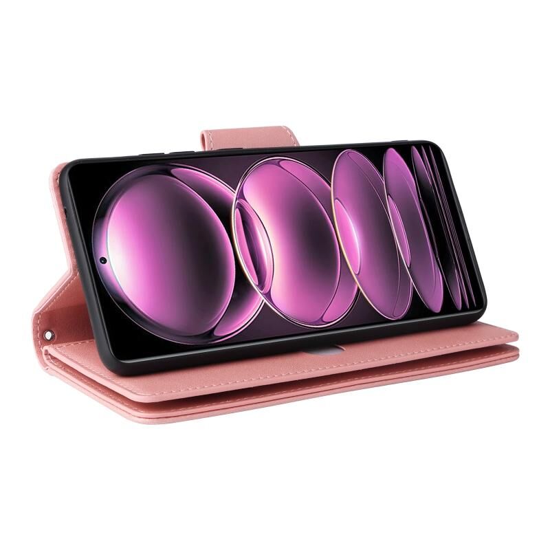 Για Xiaomi Redmi Note 12 Pro 5G Speed / Σημείωση 12 Pro 5G Global / Poco X5 Pro Rivet πόρπη 9 κάρτες τρεις φορές δερμάτινη θήκη τηλεφώνου (Rose Gold)