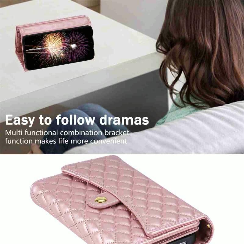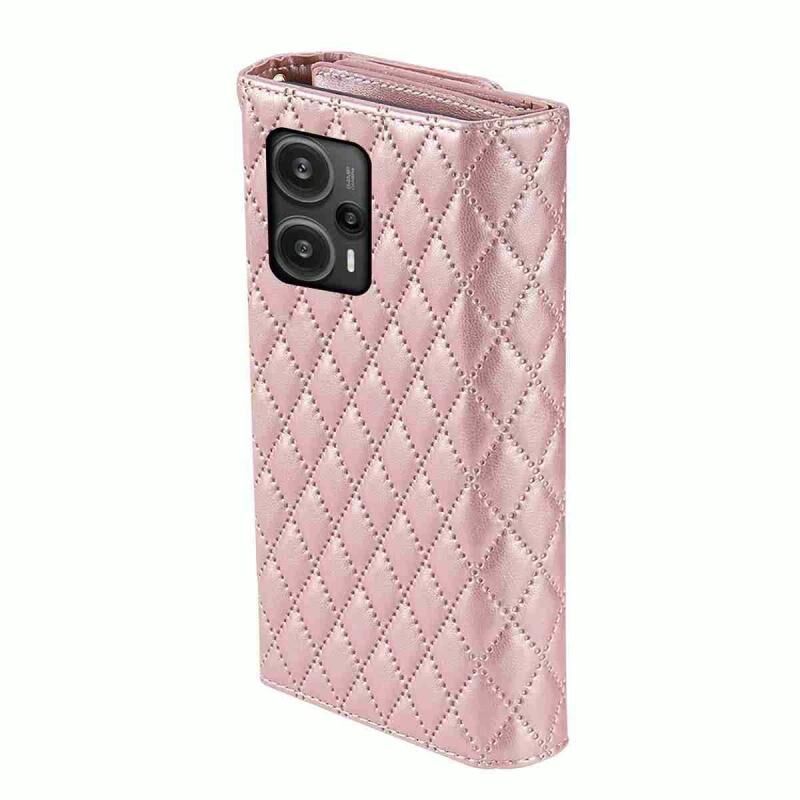 Για Xiaomi Redmi Σημείωση 12 Pro + 5G φερμουάρ πολλαπλών καρτών πορτοφόλι ρομβοειδής δερμάτινη θήκη τηλεφώνου (Rose Gold)