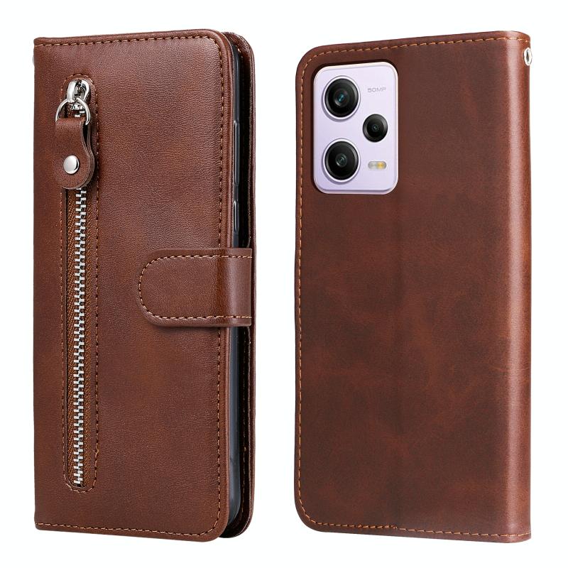 For Xiaomi Redmi Note 12 Pro+ China Calf Texture Zipper Leather Phone Case(Brown)