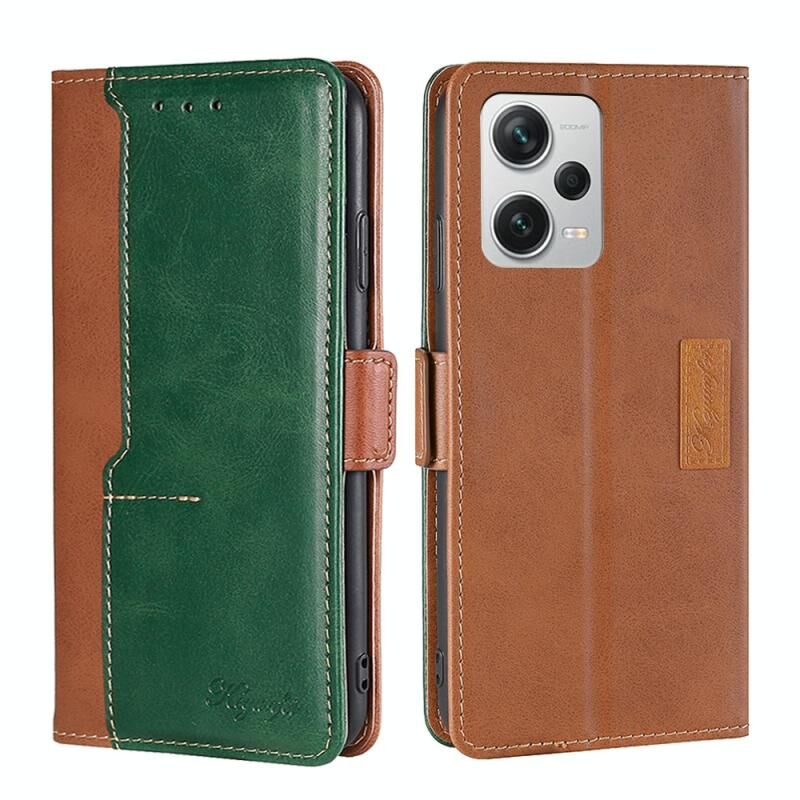 Για Xiaomi Redmi Σημείωση 12 Pro + Κίνα αντίθεση χρώμα πλευρά πόρπη δερμάτινη θήκη τηλεφώνου υπόθεση (Ανοιχτό καφέ και πράσινο)