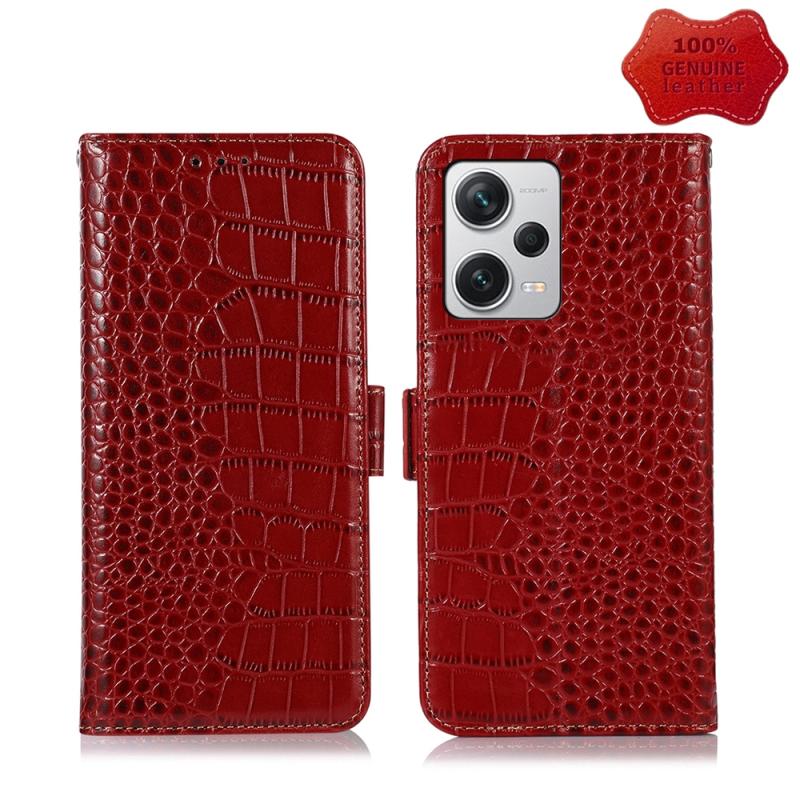 For Xiaomi Redmi Note 12 Pro+ China Magnetic Crocodile Texture Genuine Leather RFID Phone Case(Red)