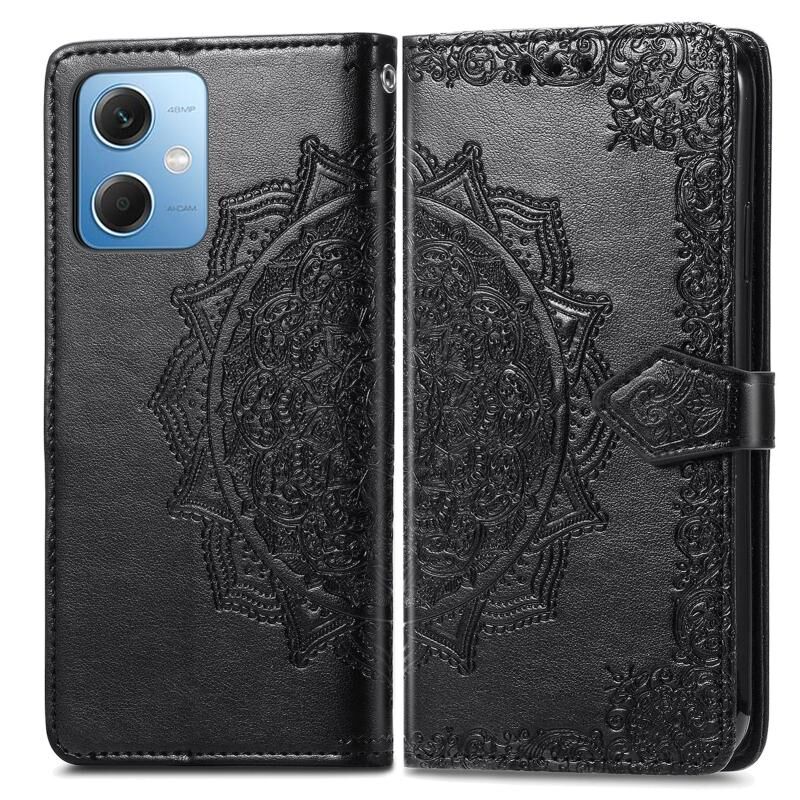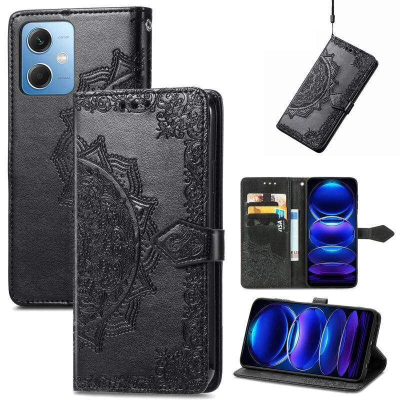 Για Xiaomi Redmi Σημείωση 12 Pro + Κίνα Mandala λουλούδι ανάγλυφο δέρμα τηλέφωνο υπόθεση (μαύρο)