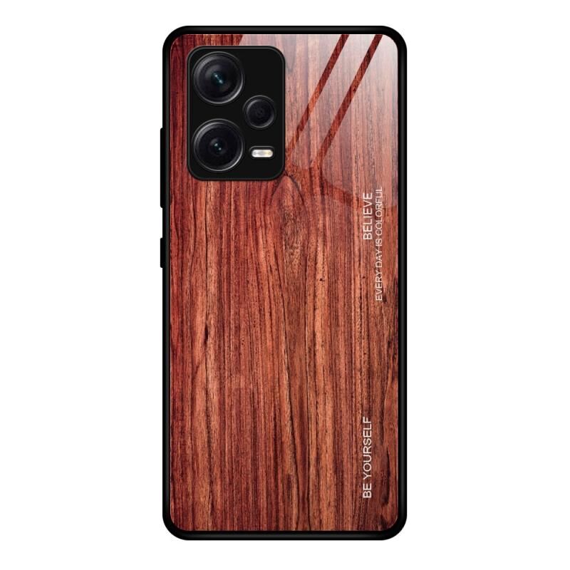 Για Xiaomi Redmi Σημείωση 12 Pro + Κίνα Wood Grain γυαλί TPU τηλέφωνο υπόθεση (καφέ)