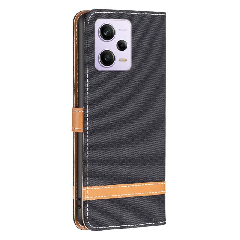 Θήκη τηλεφώνου από δέρμα με υφή denim και χρωματικό σχέδιο για Xiaomi Redmi Note 12 Pro+ Global (Μαύρο)