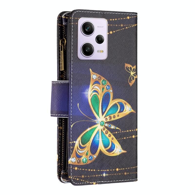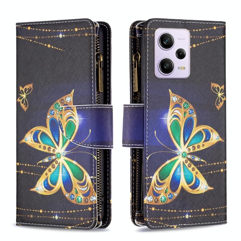 Θήκη τηλεφώνου από δέρμα με φερμουάρ και πολύχρωμο σχέδιο για Xiaomi Redmi Note 12 Pro Global (Μεγάλη Πεταλούδα)