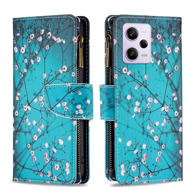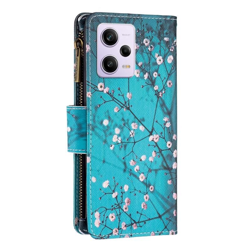 Θήκη τηλεφώνου δερμάτινη με φερμουάρ και πολύχρωμο σχέδιο για Xiaomi Redmi Note 12 Pro Global (Λουλούδι Δαμασκηνιάς)