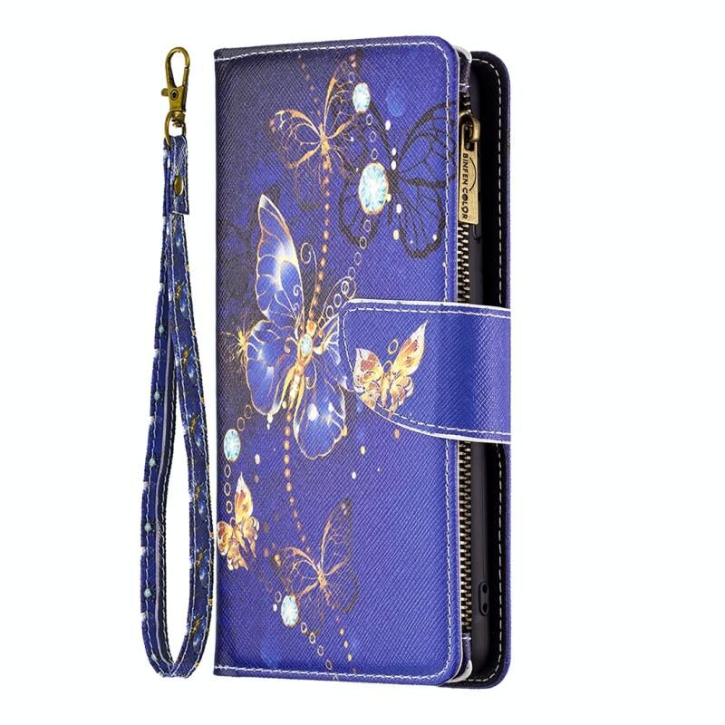 Θήκη τηλεφώνου από δέρμα με φερμουάρ και πολύχρωμο σχέδιο για Xiaomi Redmi Note 12 Pro Global (Μωβ Πεταλούδα)