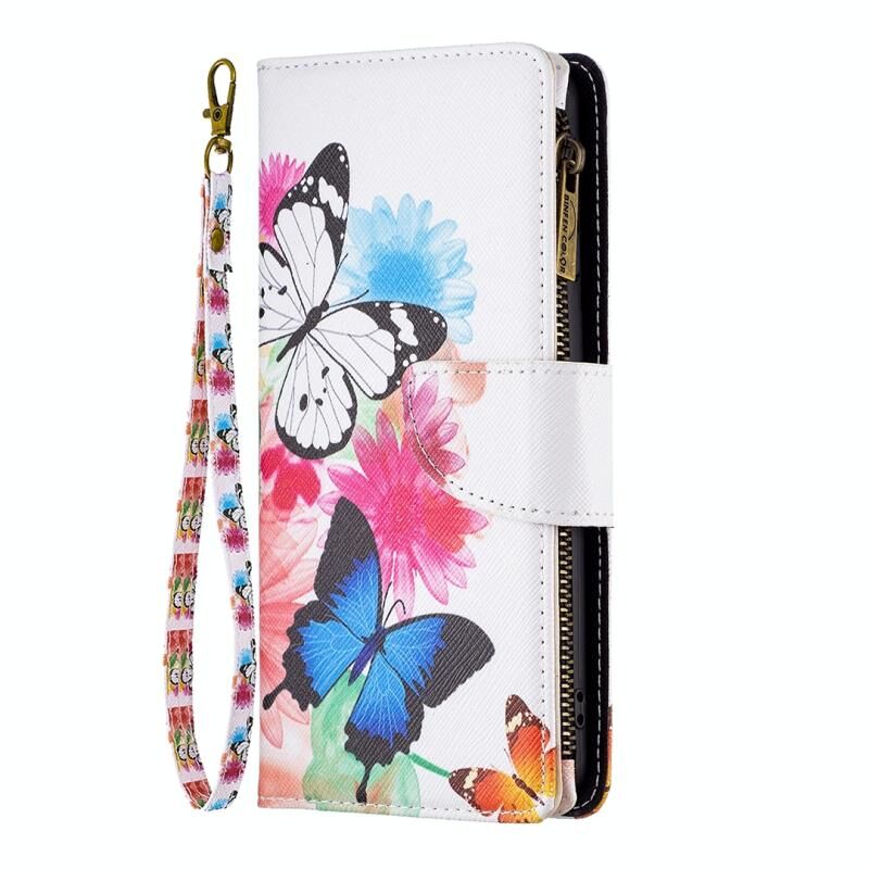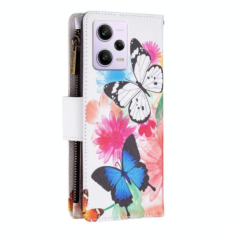 For Xiaomi Redmi Note 12 Pro Global Colored Drawing Pattern Zipper Leather Phone Case(Two Butterflies)