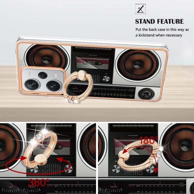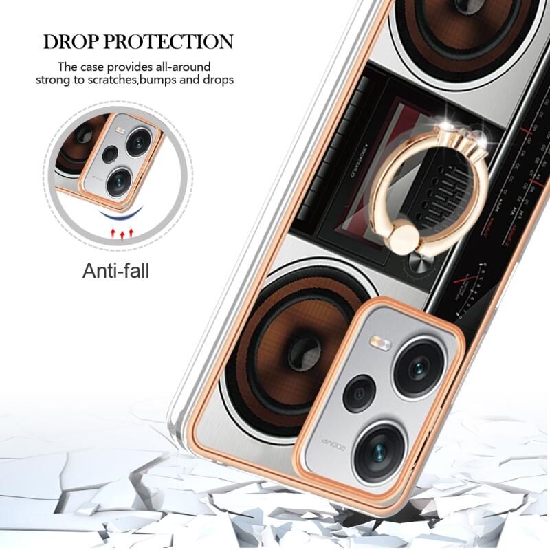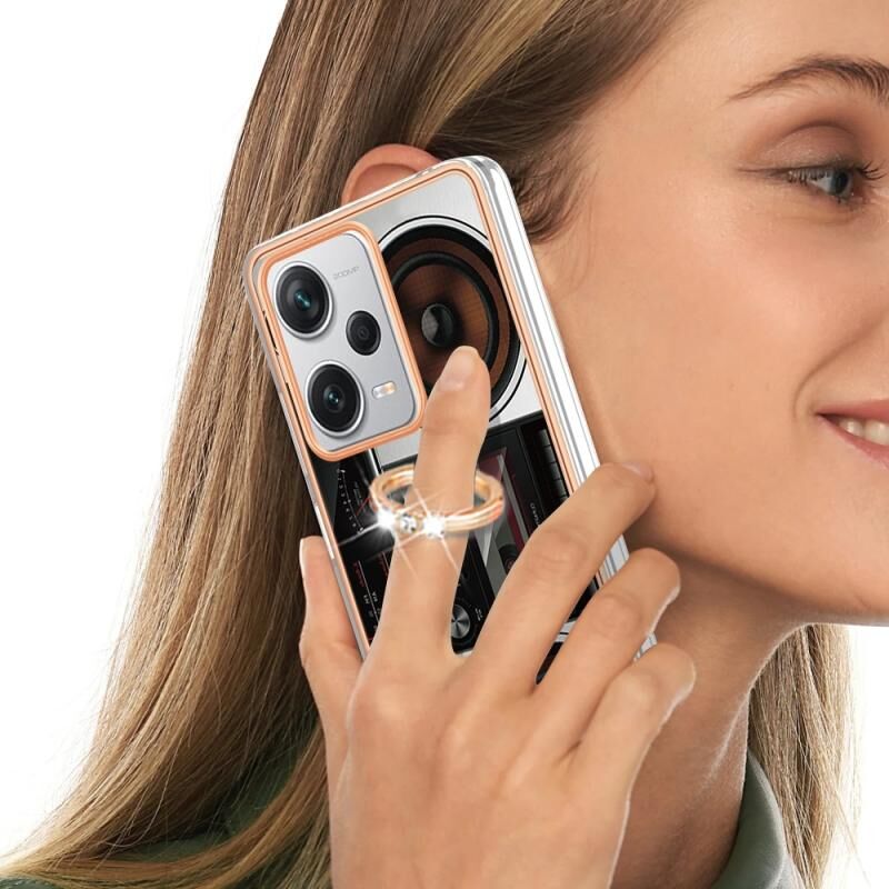 Θήκη τηλεφώνου με δακτύλιο στήριξης και σχέδιο ρετρό ραδιοφώνου για Xiaomi Redmi Note 12 Pro+ Global, με ηλεκτρολυτική επιμετάλλωση και IMD σε διπλές πλευρές.