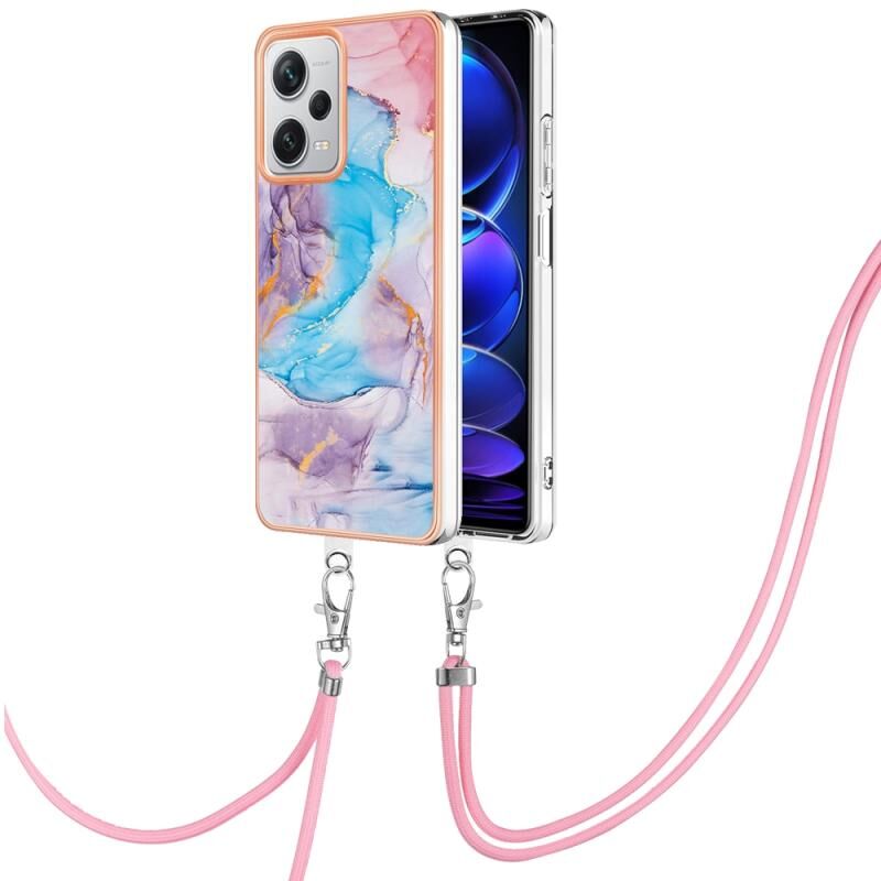 Θήκη τηλεφώνου Xiaomi Redmi Note 12 Pro+ Global Electroplating IMD TPU με κορδόνι (Ροζ Λέπια)
