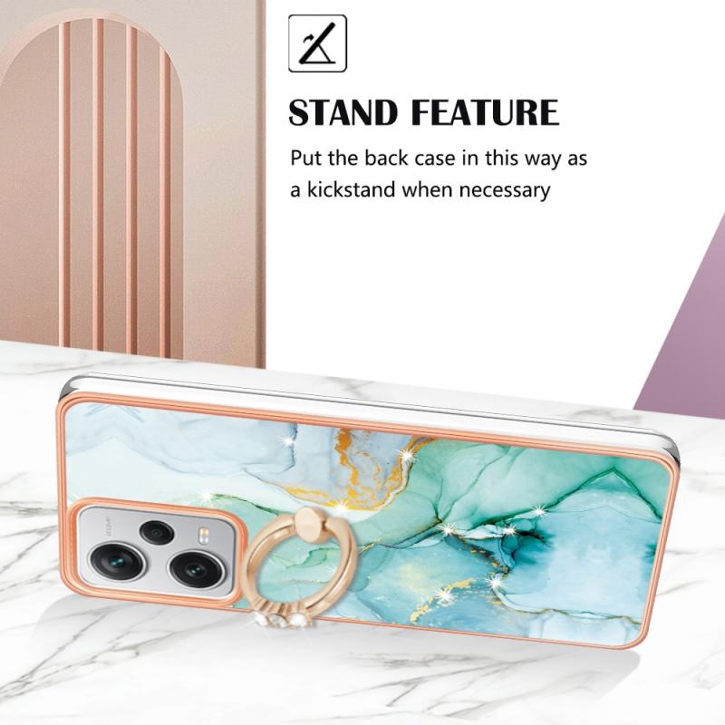 For Xiaomi Redmi Note 12 Pro+ Global Electroplating Marble IMD TPU Phone Case with Ring Holder(Green 003)