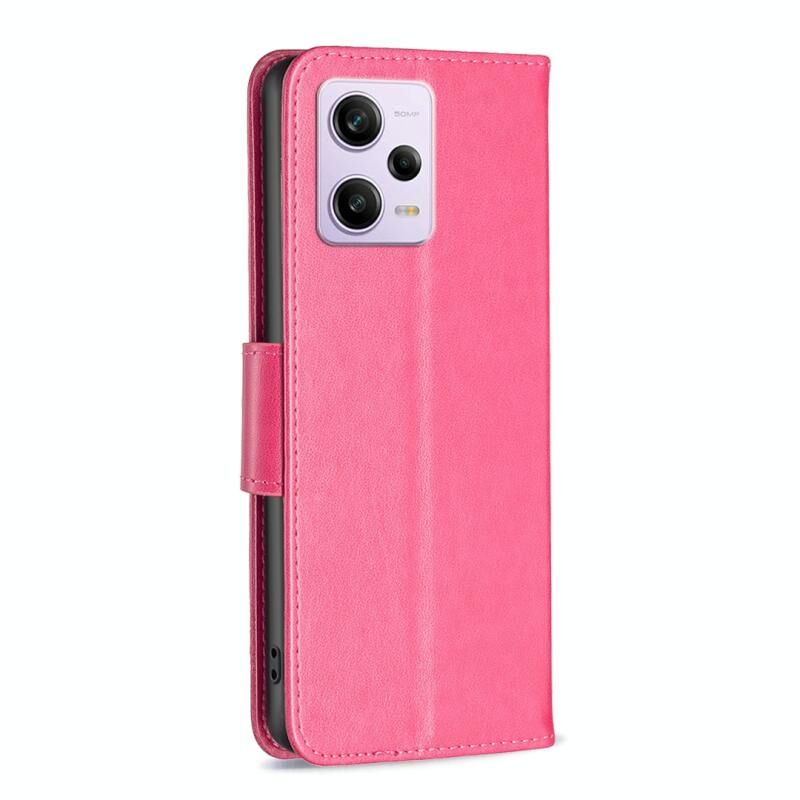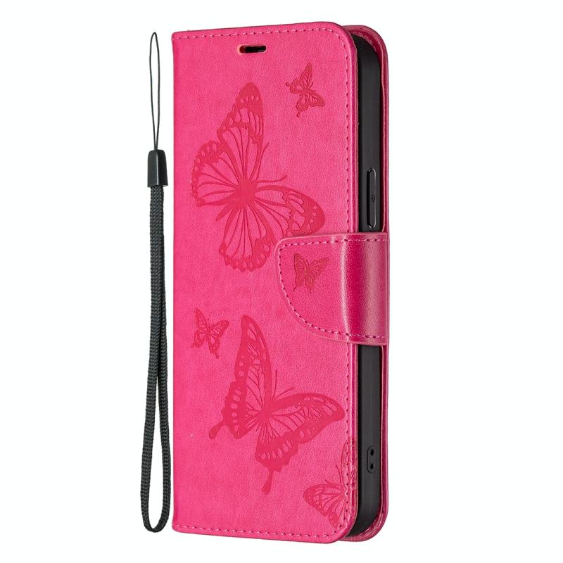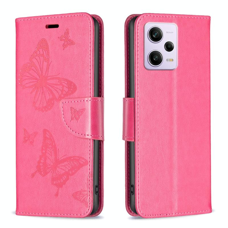 Θήκη τηλεφώνου δερμάτινη με ανάγλυφο σχέδιο δύο πεταλούδων για Xiaomi Redmi Note 12 Pro+ Global (Ροζέ κόκκινο)