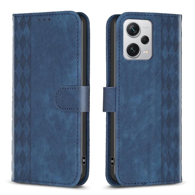 Για Xiaomi Redmi Note 12 Pro + Παγκόσμια καρό ανάγλυφη δερμάτινη θήκη τηλεφώνου (Μπλε)