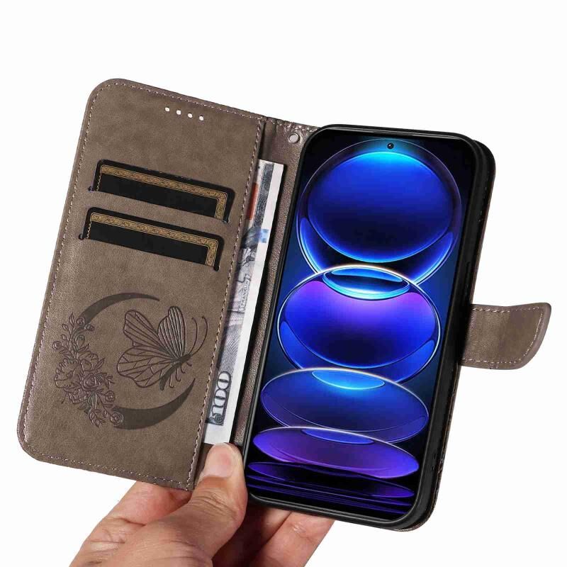 Θήκη τηλεφώνου από δέρμα με ανάγλυφο σχέδιο πεταλούδας Swallowtail για Xiaomi Redmi Note 12 Pro+ Global (Μπλε)