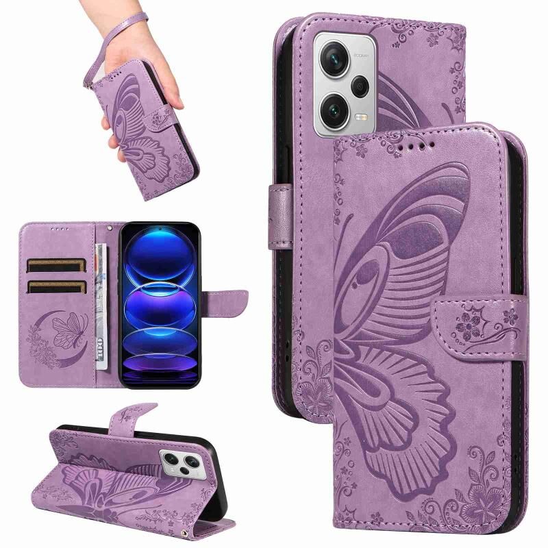 Θήκη τηλεφώνου από δέρμα με ανάγλυφο σχέδιο πεταλούδας Swallowtail για Xiaomi Redmi Note 12 Pro+ Global (Μπλε)