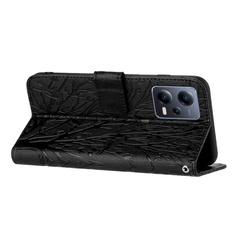 Θήκη δερμάτινη με ανάγλυφο σχέδιο Tree Birds για Xiaomi Redmi Note 12 Pro+ Global (Μαύρο)