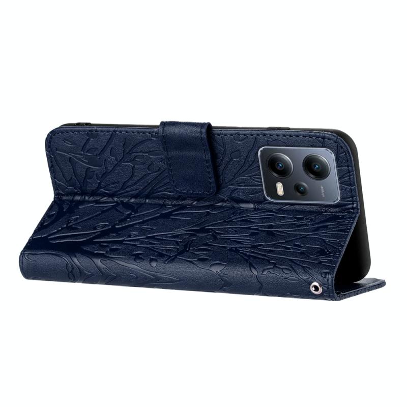 Θήκη δερμάτινη με ανάγλυφο σχέδιο Tree Birds για Xiaomi Redmi Note 12 Pro+ Global (Μπλε)