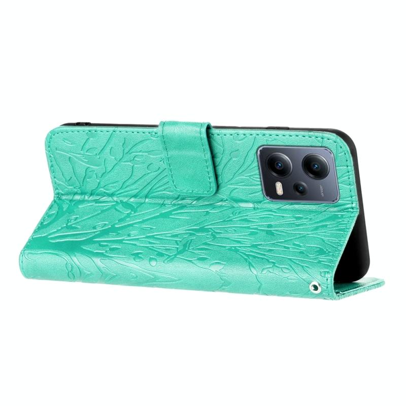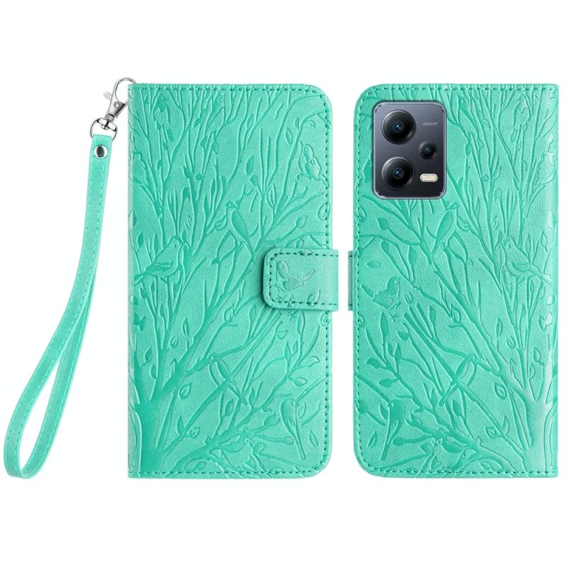 Θήκη δερμάτινη με ανάγλυφο σχέδιο Tree Birds για Xiaomi Redmi Note 12 Pro+ Global (Πράσινο)