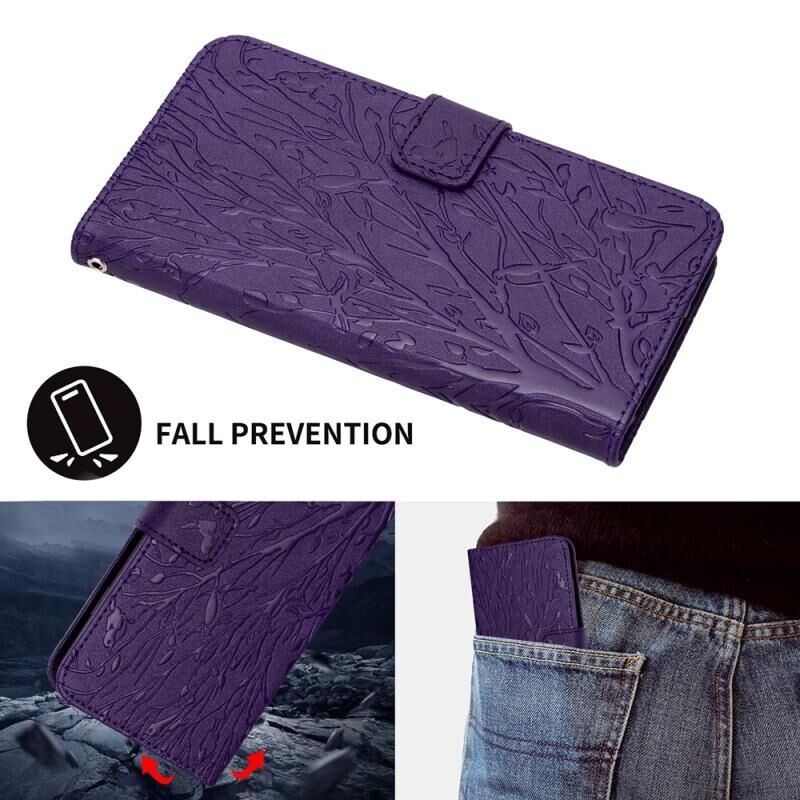 Θήκη δερμάτινη με ανάγλυφο σχέδιο Tree Birds για Xiaomi Redmi Note 12 Pro+ Global (Μωβ)