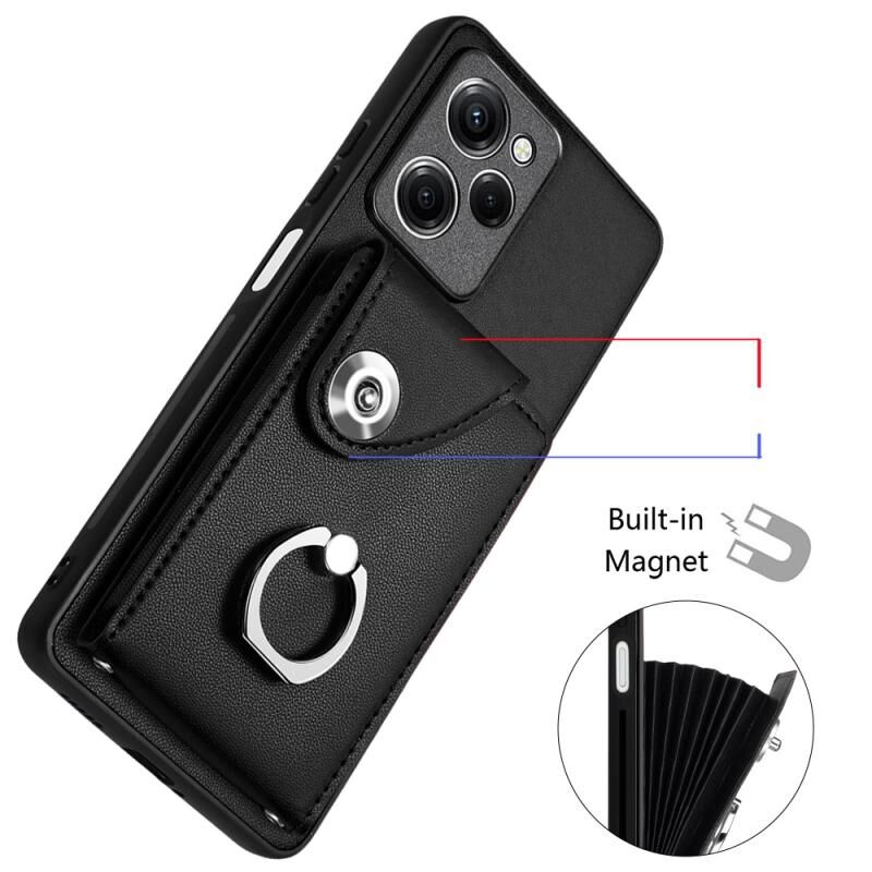 Για Xiaomi Redmi Note 12 Pro Speed Organ Card Bag τσάντα δαχτυλίδι κάτοχος τηλέφωνο υπόθεση με μακρύ κορδόνι (μαύρο)