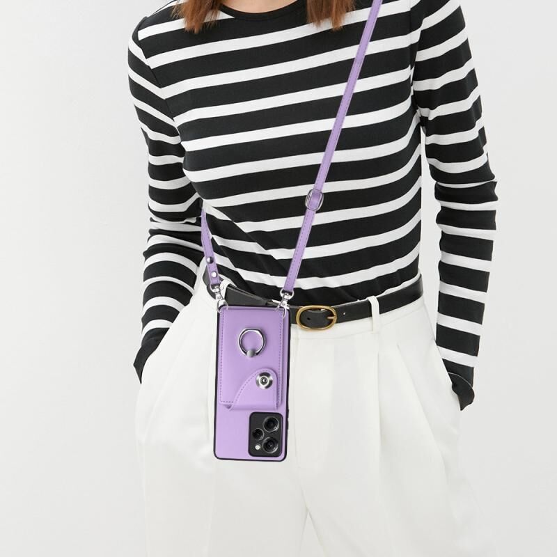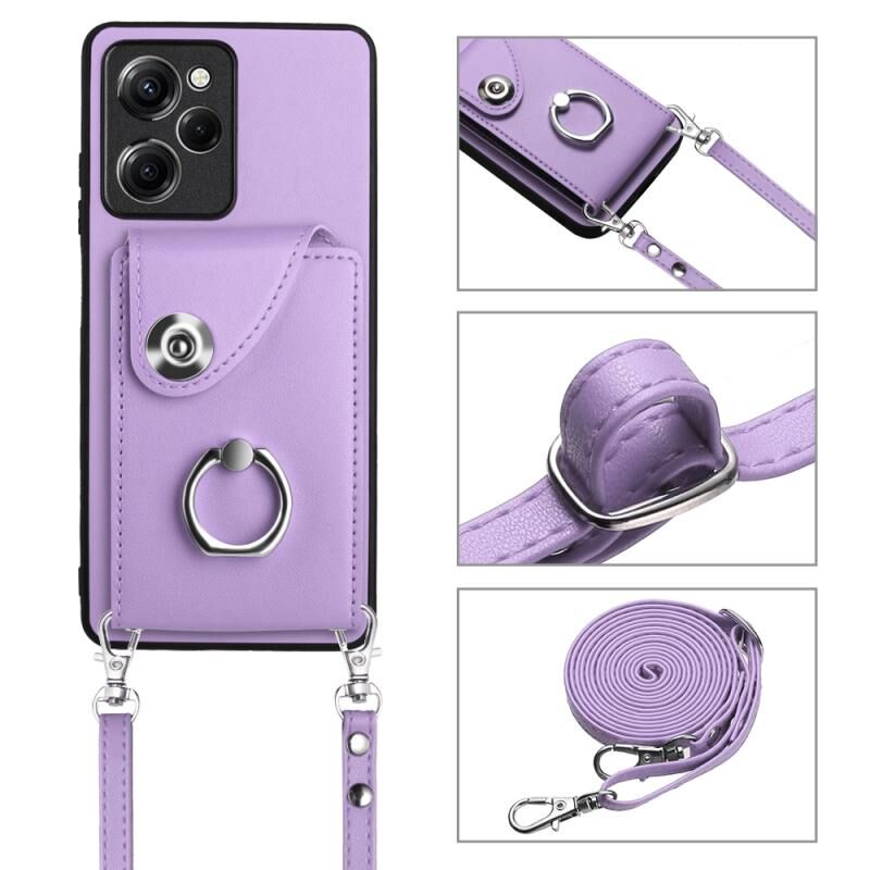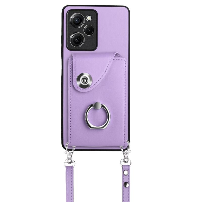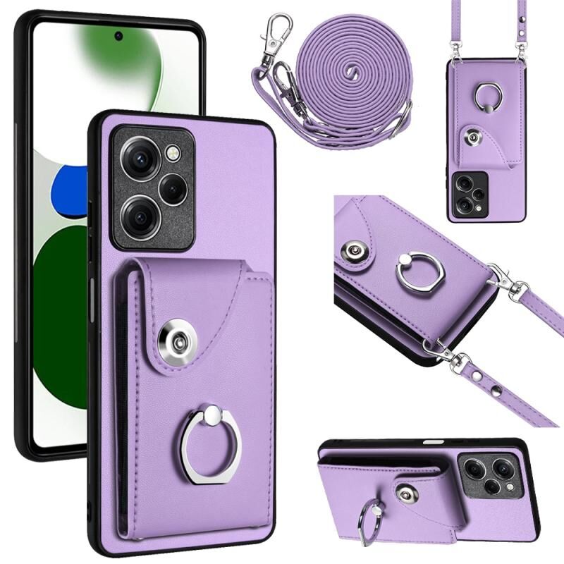 Για Xiaomi Redmi Note 12 Pro Speed Organ Card Bag τσάντα δαχτυλίδι κάτοχος τηλέφωνο υπόθεση με μακρύ κορδόνι (μωβ)