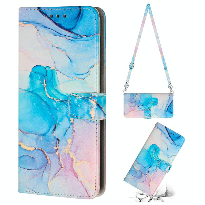 For Xiaomi Redmi Note 12 Pro Speed / Poco X5 Pro 5G Crossbody Painted Marble Pattern Leather Phone Case(Pink Green)