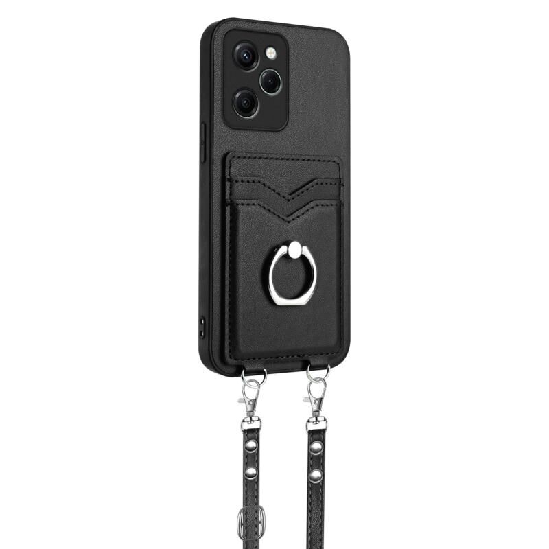 Για Xiaomi Redmi Σημείωση 12 Pro Speed R20 Crossbody σχοινί δαχτυλίδι κάρτας κάτοχος υπόθεση τηλεφώνου (μαύρο)