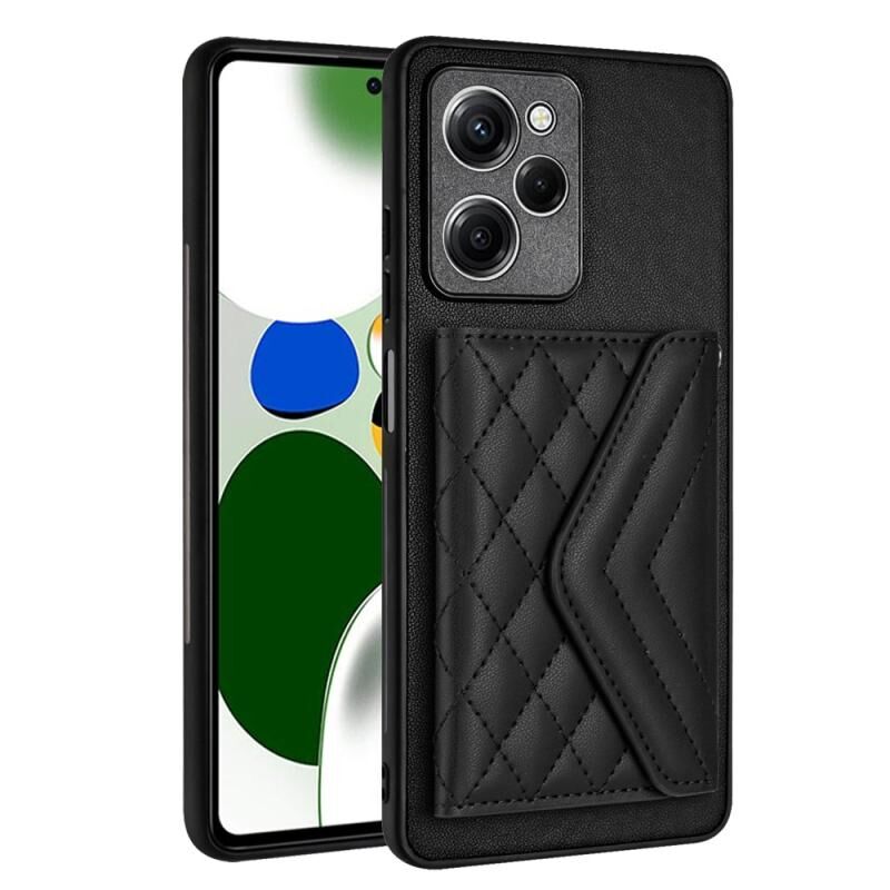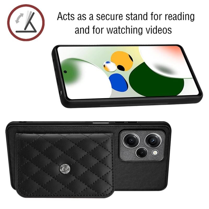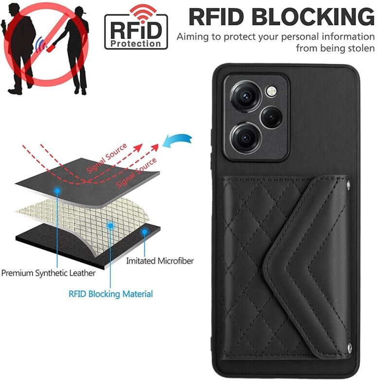Για Xiaomi Redmi Σημείωση 12 Pro Speed Rhombic υφή κάρτα τσάντα RFID υπόθεση τηλεφώνου με μακρύ κορδόνι (Μαύρο)