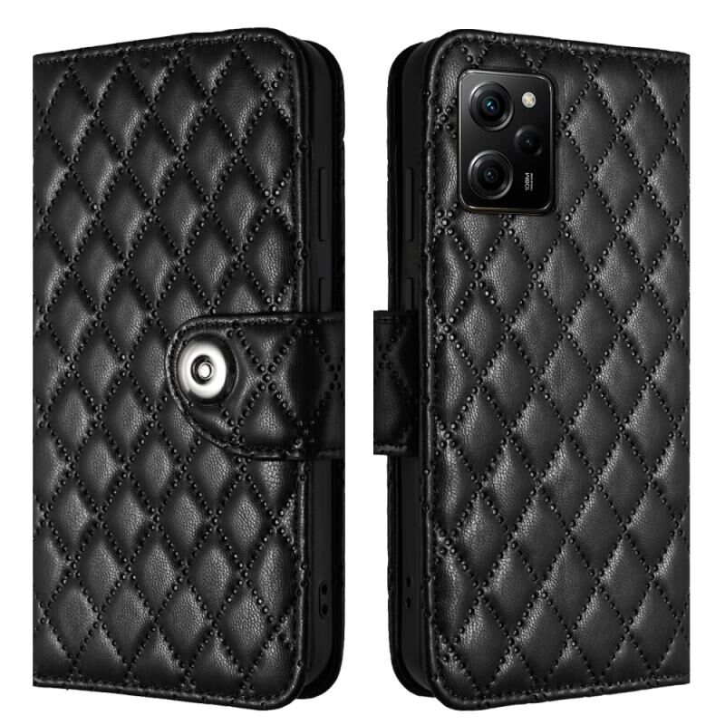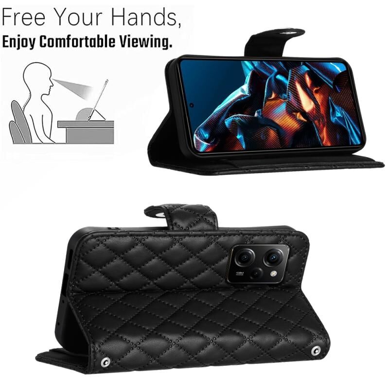 Για Xiaomi Redmi Note 12 Pro Speed Rhombic Texture Flip δέρμα τηλέφωνο υπόθεση με κορδόνι (Μαύρο)