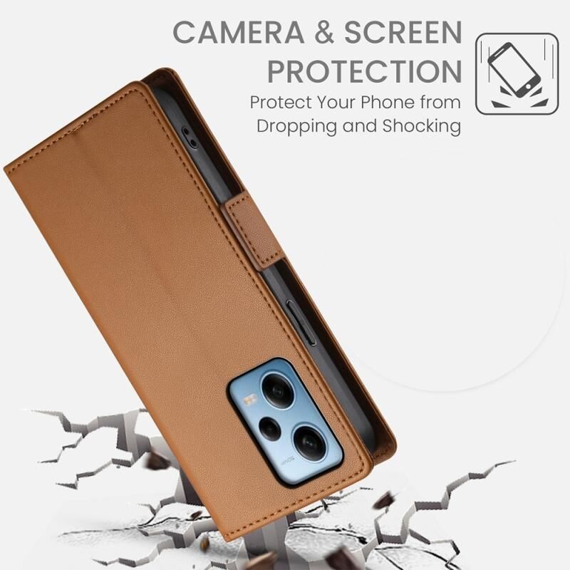 Για Xiaomi Redmi Note 12 Pro Speed Side Πόρπη μαγνητική παγωμένη δερμάτινη θήκη τηλεφώνου (καφέ)