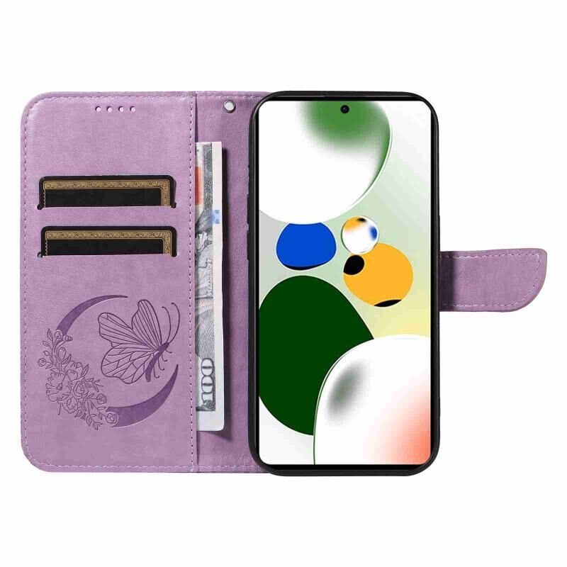 Θήκη τηλεφώνου από δέρμα με ανάγλυφο σχέδιο πεταλούδας Swallowtail για Xiaomi Redmi Note 12 Pro (Μωβ)