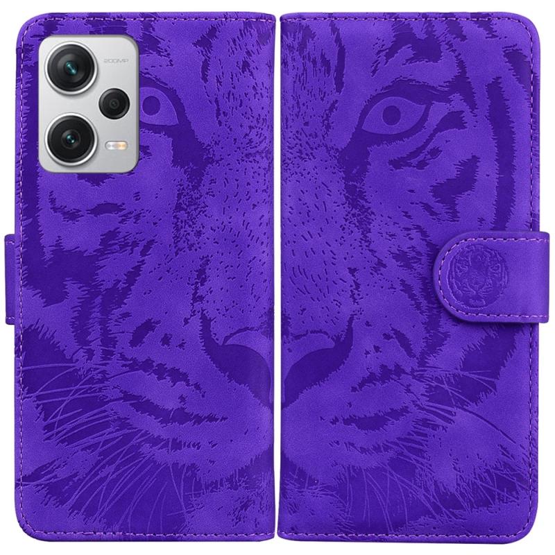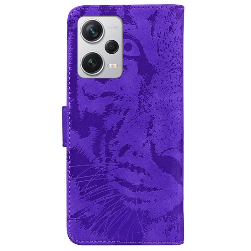 Θήκη δερμάτινη με ανάγλυφο σχέδιο τίγρης για Xiaomi Redmi Note 12 Pro+ (Μωβ)