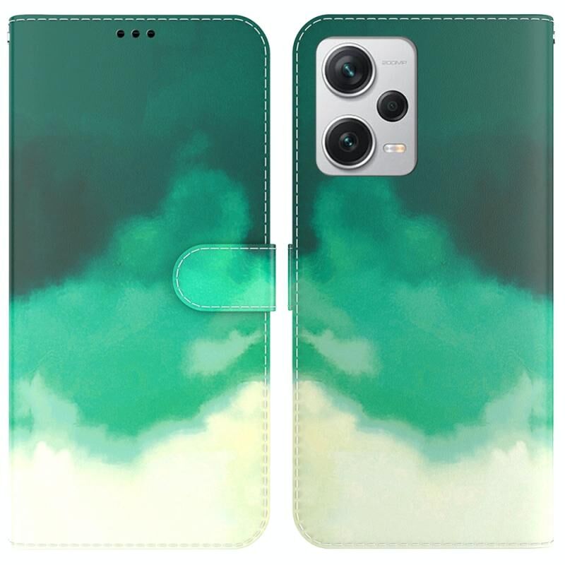 Για Xiaomi Redmi Σημείωση 12 Pro + Υδατογραφία μοτίβο Flip υπόθεση τηλεφώνου δέρμα (Cyan πράσινο)