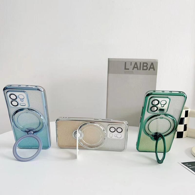 Θήκη τηλεφώνου Xiaomi Redmi Note 12 Turbo 5G με περιστρεφόμενη βάση MagSafe, διαφανές TPU με λαμπερό διαβαθμισμένο χρώμα (Ροζ)