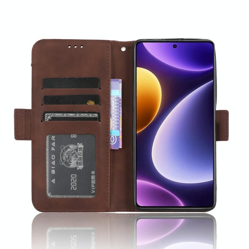 Για Xiaomi Redmi Σημείωση 12 Turbo 5G δέρμα αίσθηση μοσχάρι υφή κάρτα υποδοχές δερμάτινη θήκη τηλεφώνου (καφέ)